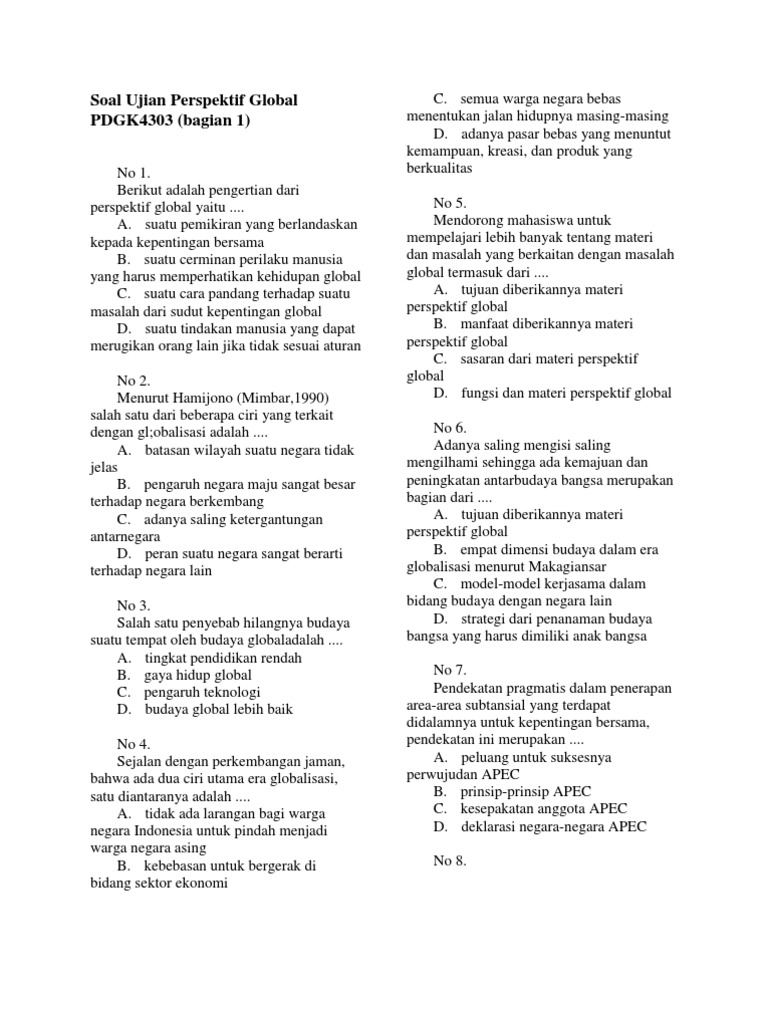 Soal Ujian Ut Pgsd Pdgk4303 Perspektif Global Basbahanajar Com
